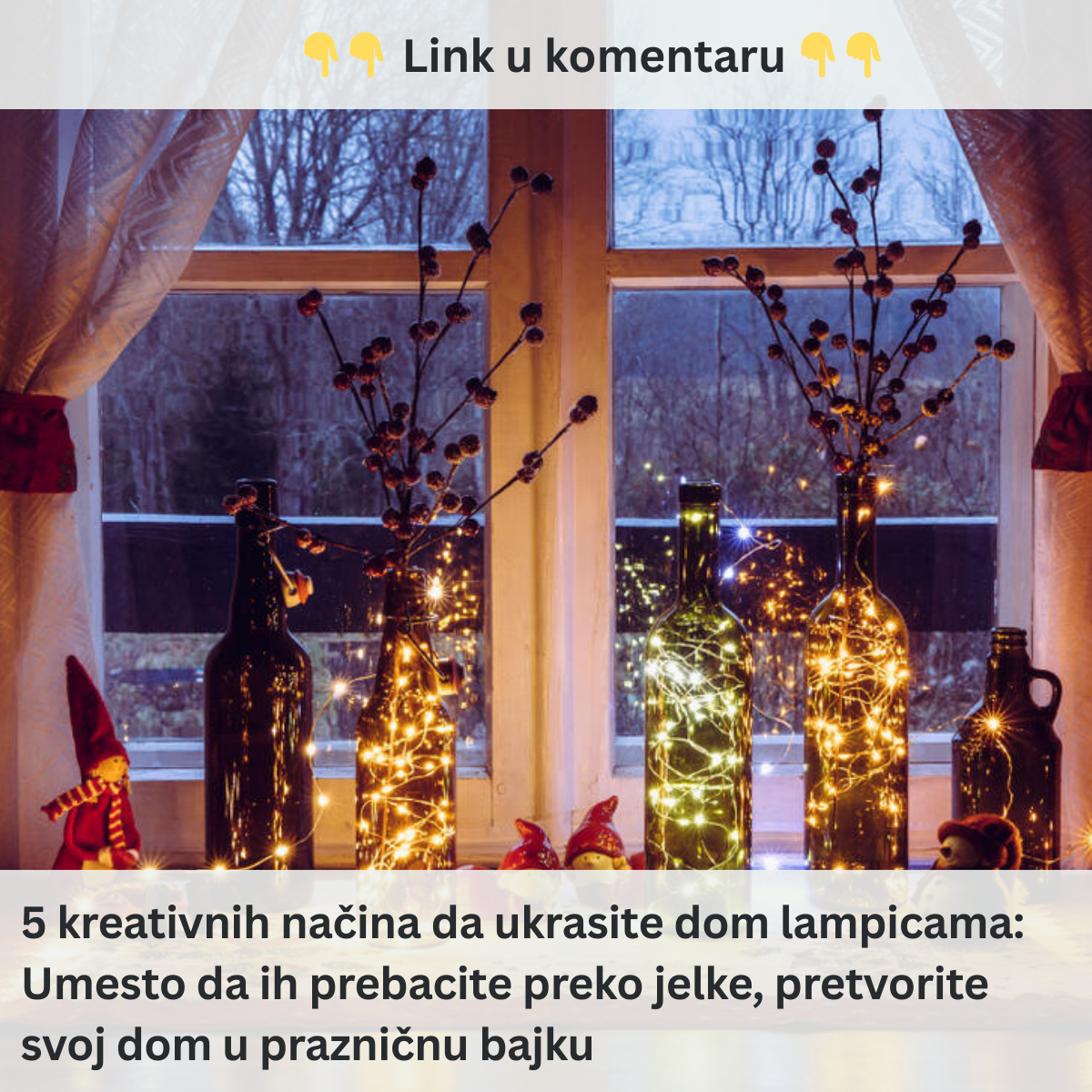- Lampice nisu samo za jelku – uz malo mašte, mogu potpuno transformisati prostor. Njihova nežna svetlucava igra unosi mir, budi nostalgiju i dodaje šarm svakom kutku doma. Iako je kačenje lampica na jelku najčešće poslednji korak u procesu ukrašavanja, zašto ne iskoristiti njihov potencijal na kreativniji način? Postoji mnogo interesantnih i jednostavnih načina kako ih možete koristiti. U nastavku su neki od najlepših i najefikasnijih načina da unesete još više prazničnog duha u svoj dom.