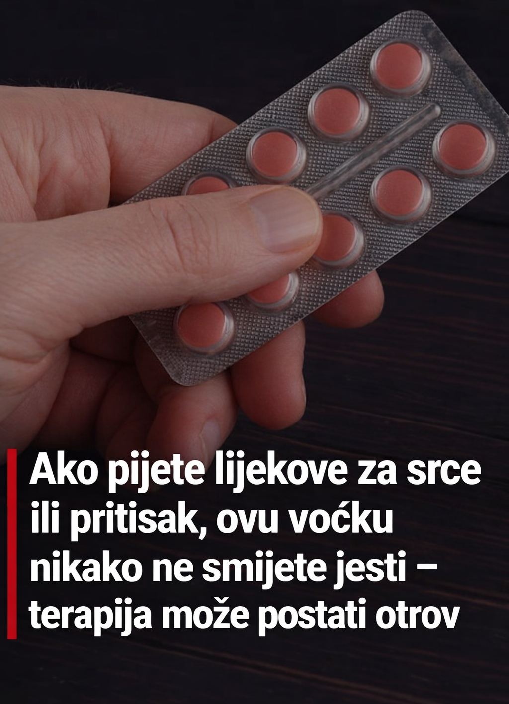 U ovom članku donosimo važno upozorenje za sve koji koriste lijekove za srce ili krvni pritisak, jer jedna naizgled zdrava voćka može ozbiljno poremetiti djelovanje terapije. U nastavku saznajte o kojoj se namirnici radi i zašto ljekari savjetuju poseban oprez…