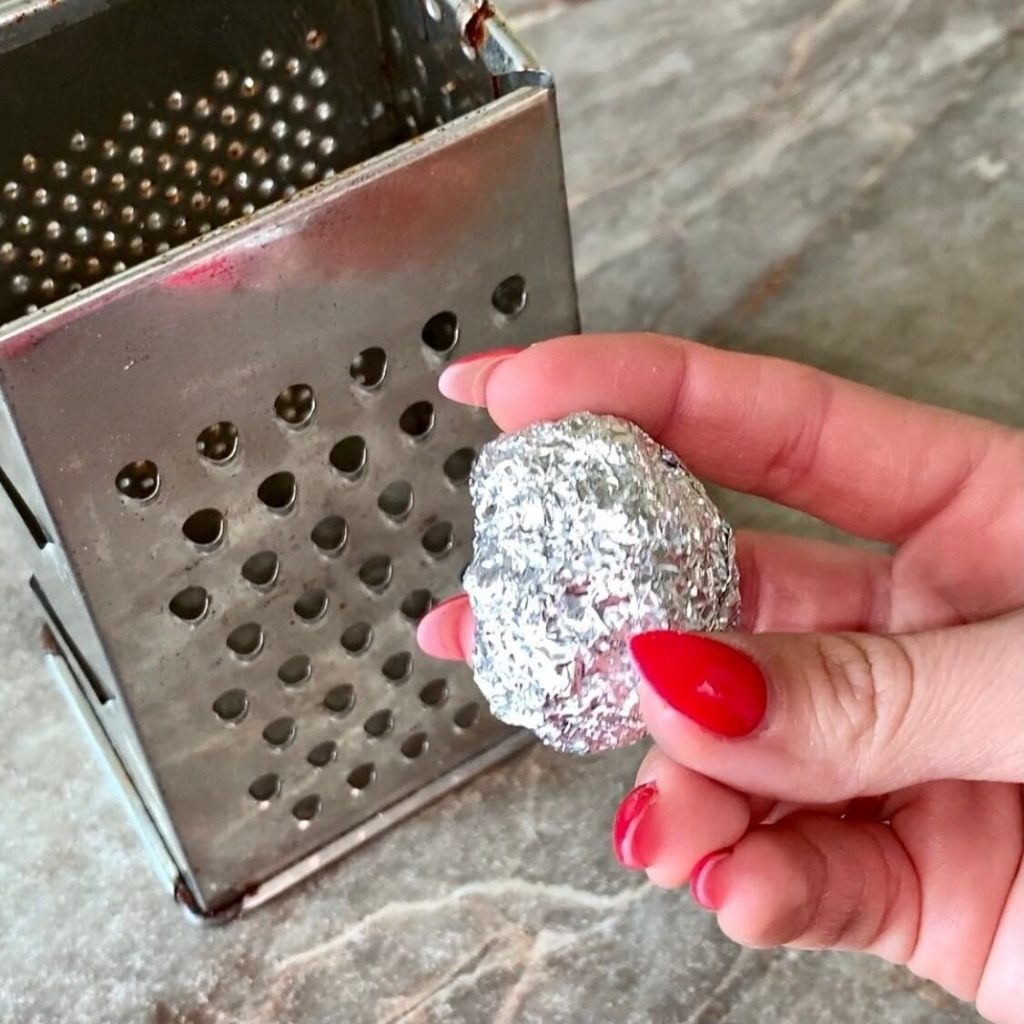 Ne treba vam nikakav specijalan alat, nema potrebe da kupujete brusne kamene, ribež ili druge proizvode koji se nude kao rješenje. Dovoljno je samo iskoristiti nešto što već posjedujete, pa čak i ako to nije novi komad folije, dobar posao mogu obaviti i ostaci sa omota čokolade, bombona ili ambalaže koja takođe sadrži aluminijum.