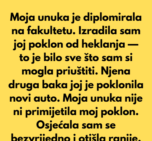 Moja je unuka diplomirala na fakultetu. Izradila sam joj poklon od heklanja…