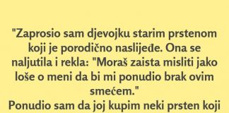 “Zaprosio sam djevojku starim prstenom koji je porodično naslijeđe…”