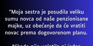 “Moja sestra je posudila od nase majke koja ima malenu penziju...