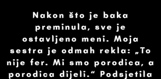 “Kada je Baka umrla svo nasljedstvo je ostavila meni- Niko drugi...