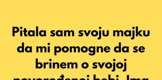 Pitala sam svoju majku da mi pomogne da se brinem o...