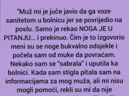 Muž mi je juče javio da ga voze sanitetom u bolnicu jer se povrijedio na poslu. Samo je rekao NOGA JE U PITANJU…