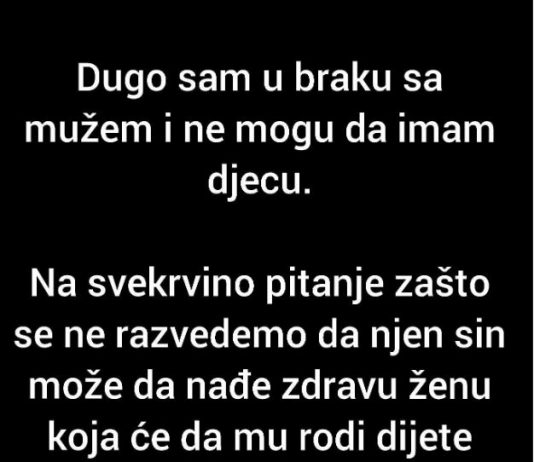 Na svekrvino pitanje zašto se ne razvedemo da bi njen sin mogao da nađe zdravu ženu koja će da mu rodi dijete, moj muž...