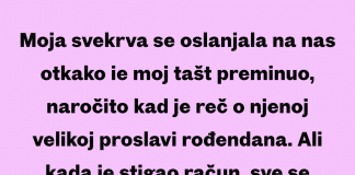 Nisam platio za 68. rođendan svoje svekrve — Ne može me...