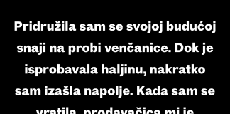 “Pridružila sam se svojoj budućoj snaji na probi venčanice…”