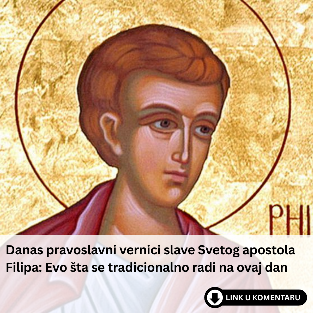 Danas, 24. oktobra, Srpska pravoslavna crkva zajedno sa svojim vernicima obeležava dan posvećen Svetom apostolu Filipu, đakonu iz drevne Cezareje, na teritoriji današnje Palestine. Ovaj svetitelj, poznat po svojoj mudrosti i dubokom predanju hrišćanskoj veri, ostao je upamćen kao učitelj i propovednik koji je svoj život posvetio obrazovanju i duhovnom prosvetljenju ljudi, bez obzira na njihovu veru ili poreklo. Njegova misija bila je jednostavna, a opet toliko snažna – širiti reč Božiju i pomagati ljudima da pronađu put ka veri i istini. „Blic“ podseća da se u srpskom narodu praznik ovog svetitelja tradicionalno vezuje i za početak Filipovskog posta, čime on dobija posebno mesto u duhovnom kalendaru.