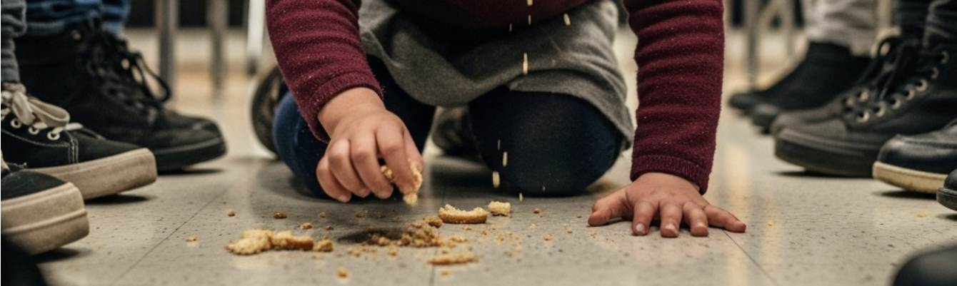 - Cijeli razred je prasnuo u smijeh. Djevojčice su se hihotale, dječaci su pokazivali prstom. Učiteljica Ana je upravo ulazila u razred. “Što se ovdje događa?” pitala je strogo, no kad je vidjela mrvice na podu, samo je uzdahnula. “Iva, opet praviš nered? Koliko puta sam ti rekla da ne donosiš hranu koja se mrvi? Počisti to odmah.” Iva je čučnula, crvena od srama, i počela skupljati mrvice s prljavog poda. Suze su joj kapale po rukama. Osjećala se kao najbjednije stvorenje na svijetu. Nije mogla reći istinu. Nije mogla reći zašto jede samo koru.