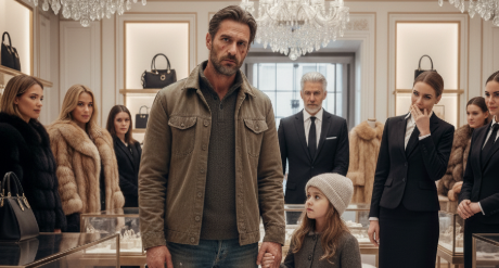 Jednog hladnog jutra, otac i njegova mala kći kročili su u luksuznu prodavnicu, tražeći skroman poklon za njen rođendan. Dok su hodali između sjajnih vitrina i mramornih podova, otac u svojoj staroj jakni i iznošenim cipelama delovao je kao potpuni kontrast s okolinom. Međutim, u njegovom pogledu bilo je nešto posebno — dostojanstvo koje je odražavalo unutrašnju snagu, kao i ljubav prema svojoj kćeri. Držeći je za ruku, tiho je rekao: