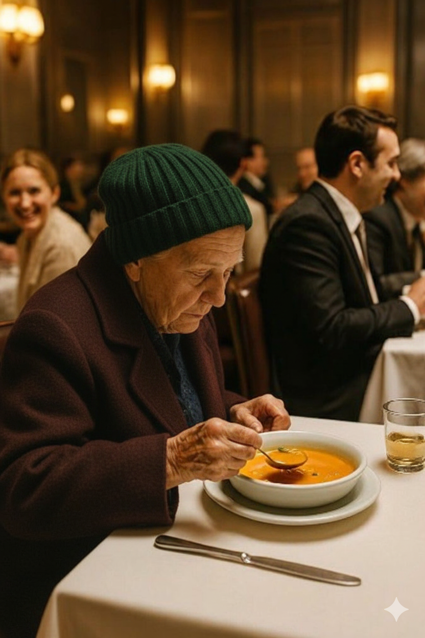 Unutar restorana, osećala je prezir prema sebi. Čula je zle komentare, podsmehe i zle šaputanja. Neko je čak rekao da je “siromašica među bogatašima”. To je bila uvreda, ali i jasan pokazatelj društvene arogancije. Međutim, žena nije reagovala na te reči. Svesna je bila svog cilja i nije dopuštala da bilo šta ometa njenu misiju. Iako su je drugi ismevali, ona je ostala mirna. Znala je da je tu iz drugog razloga – nije došla da uživa u luksuzu, već da ispuni san koji je oduvek nosila u srcu. Na meniju je naručila najjednostavnije jelo: povrtnu supu. Taj obrok za nju nije bio samo hrana, već simbol nečega mnogo dubljeg. Supa je bila veza sa prošlim vremenima, podsećanje na toplinu doma i ljubav koju je nekada živela.