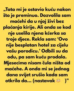 Žena o kojoj ćemo pričati nije mogla ni zamisliti da će joj smrt njenog oca donijeti više problema nego koristi. Na početku je sve izgledalo kao običan obiteljski spor – dozvolila je svojoj maćehi da živi u obiteljskoj kući bez plaćanja kirije, nadajući se da će to biti znak obiteljskog razumijevanja i ljubavi. Međutim, stvari su vrlo brzo izmakle kontroli. Maćeha je pozvala svoju kćerku i troje unučadi da se usmjeste, iako nije imala pravo na to. Žena je, naravno, željela postaviti granice, objašnjavajući da kuća nije besplatan smještaj za cijelu obitelj, no situacija je otišla u potpuno drugom smjeru.
