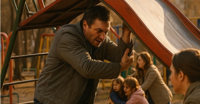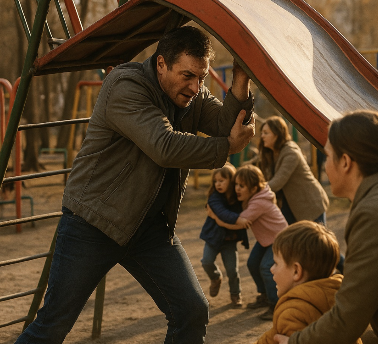 Zvuk je bio tih, ali oštar, gotovo krckav. Kao da se nešto lomi iznutra. Podigla sam pogled i shvatila da se vrh tobogana polako naginje prema dolje. Artjom je bio gore, zajedno s još troje djece. U tom trenutku, ugledala sam ga. Stajao je sa strane, visok, u sivoj jakni, izgledao je sasvim običan. Nije bio niko ko bi privukao pažnju. Nisam mogla da shvatim kako je mogao predvidjeti ono što će se dogoditi, ali on je to učinio.