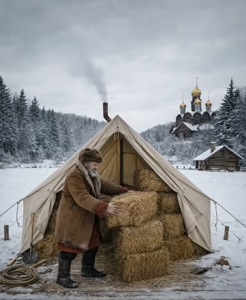 Umjesto da zida ili obnavlja kuću, postavio je jednostavan šator. Platno razapeto, konstrukcija skromna, ništa što bi ulijevalo sigurnost. Ali ono što je privuklo pažnju svih bilo je to što je danima unosio ogromne količine slame unutra.