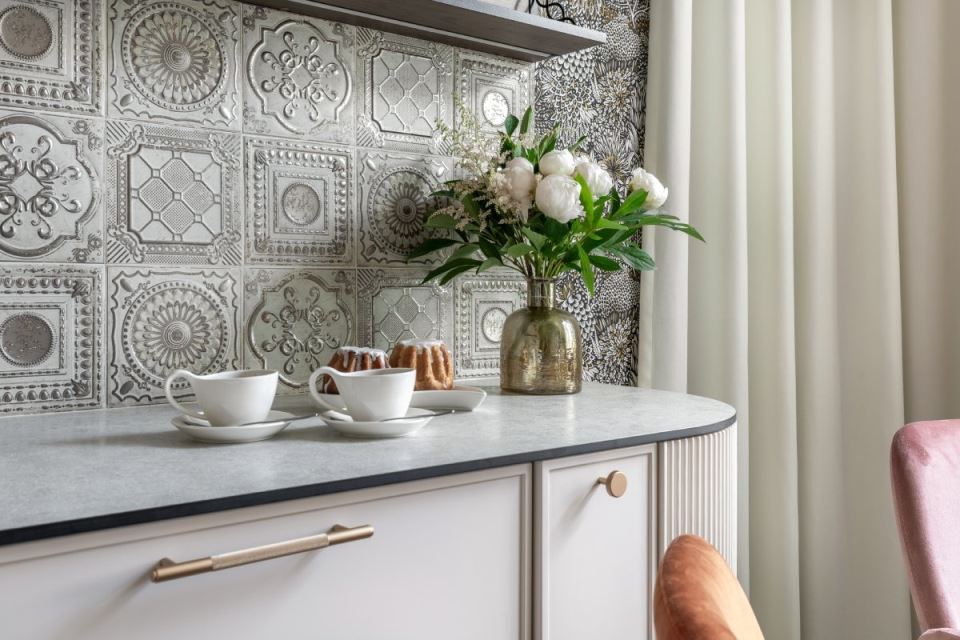 - Usklađivanje pločica sa ostatkom kuhinje jednako je važno kao i sam izbor materijala. Ako su elementi kuhinje u svjetlim tonovima, pločice mogu poslužiti kao pažljivo odabran akcent koji će naglasiti karakter prostora. Ako su, s druge strane, elementi već dovoljno dominantni, neutralne pločice pomažu da se postigne vizuelna ravnoteža. Jedna od sve popularnijih ideja jeste produžetak radne površine prema gore, umjesto klasičnih pločica. Time se dobija elegantan kontinuitet koji stvara vizuelnu povezanost i dodatno olakšava održavanje. Kada se radna ploča nastavi kao zaštitni panel, nema spojeva u kojima bi se nakupljala prljavština, što čini prostor higijenski čistijim i vizuelno smirenijim.