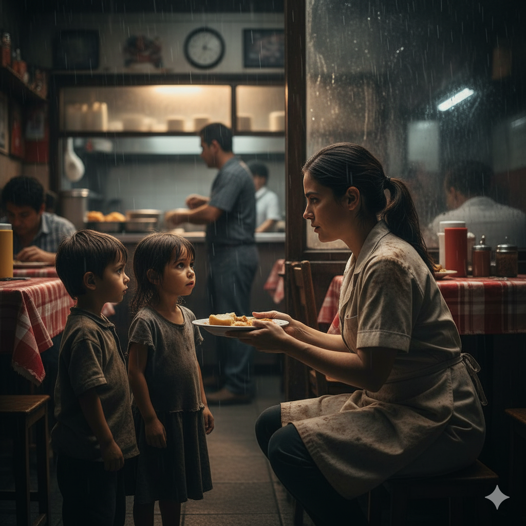 Marija je stavila ruke na lice, pokušavajući da prikrije svoje emocije. „Jedan obrok ne može da menja sudbinu.“ On je blago nasmešio i odgovorio: „Kada umireš od gladi i nada umire, jedan obrok menja sve.“U tom trenutku su se otvorila vrata. Na pragu je stajala mlada žena sa tamnom kosom i dubokim očima. „To je Valerija, moja sestra,“ rekao je mladić. Devojka je prišla i snažno zagrlila Mariju.„Hvala ti što tada nisi prošla ravnodušno,“ rekla je kroz suze. „Hvala ti što si nam pokazala da još uvek ima dobrih ljudi.“ Marija ih je oboje zagrlila kao svoju decu.