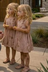 Bile su potpuno identične, kao odraz u ogledalu. Male, možda pet ili šest godina stare, sa kosom pažljivo počešljanom, ali licima uprljanim i nogama prekrivenim prašinom. Na njihovim stopalima vidjele su se sitne ogrebotine, kao da su dugo hodale. U rukama su držale komade gline, stežući ih čvrsto, kao da su to najvažnije stvari koje posjeduju.