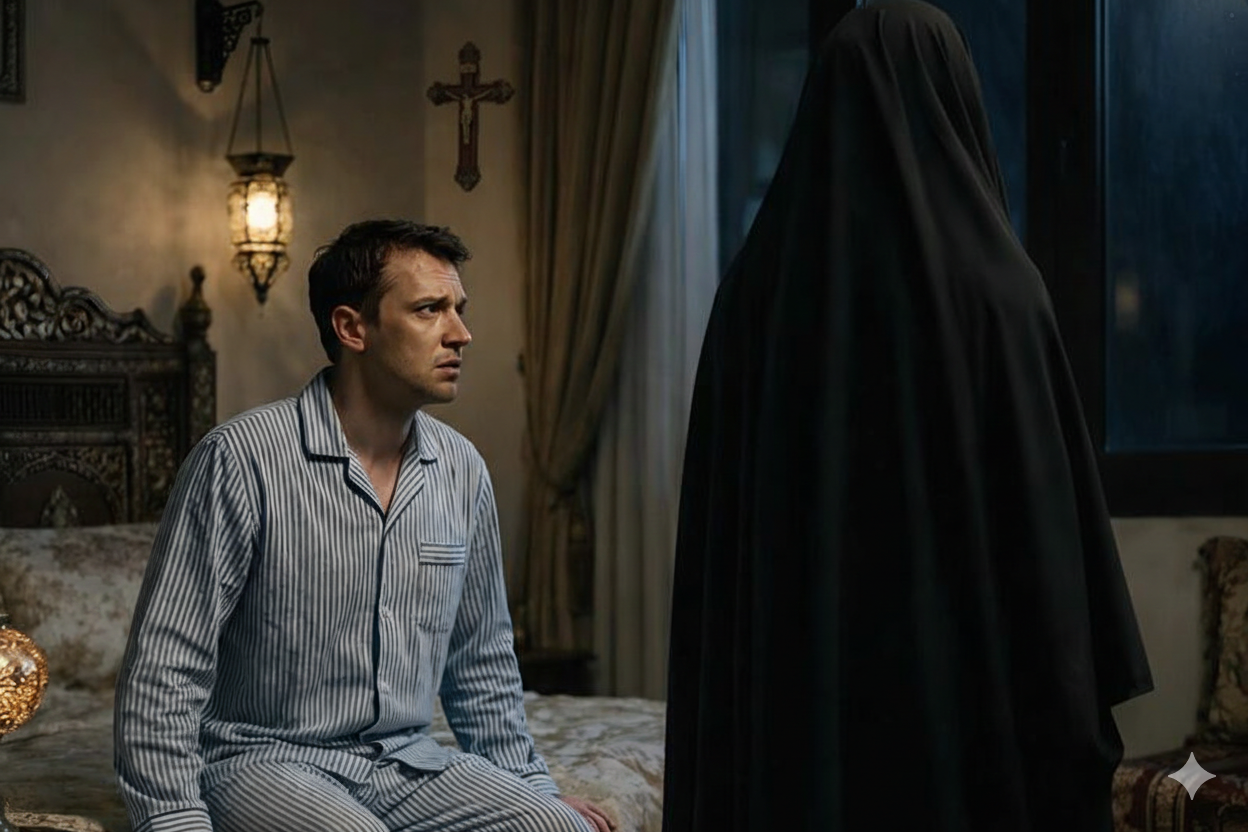 - Nakon nekoliko trenutaka, mladić je osjetio njezino prisustvo, osjetio je kako se podiže iz kreveta i polako ide prema ogledalu. Dok je ona počela skidati svoj teški svileni hidžab, mladić je lagano otvorio oči, nadajući se da ga neće primijetiti. I upravo tada, nešto se dogodilo što će ga zauvijek proganjati.
