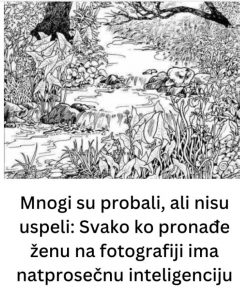 Zagonetka koja je postala viralna na društvenim mrežama prikazuje crno-belu ilustraciju prirode: gusti drveni grančici, prepletene krošnje i složeni oblici lišća koji stvaraju miran šumski pejzaž. Ipak, ono što ovu sliku čini specifičnom jeste skriveni element koji mnogi ne mogu odmah da uoče. U ovom složenom pejzažu nalazi se lice mlade žene, pažljivo uklopljeno u pozadinu, i gotovo se stapa sa okolinom. Čitav trik leži u tome da ljudski mozak automatski prepoznaje drveće i sjenke, ignorišući ono što je manje očigledno – ljudsku figuru.