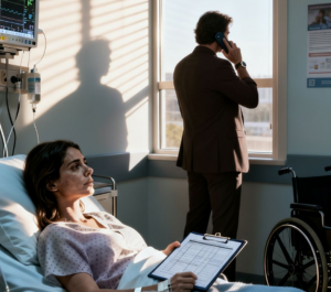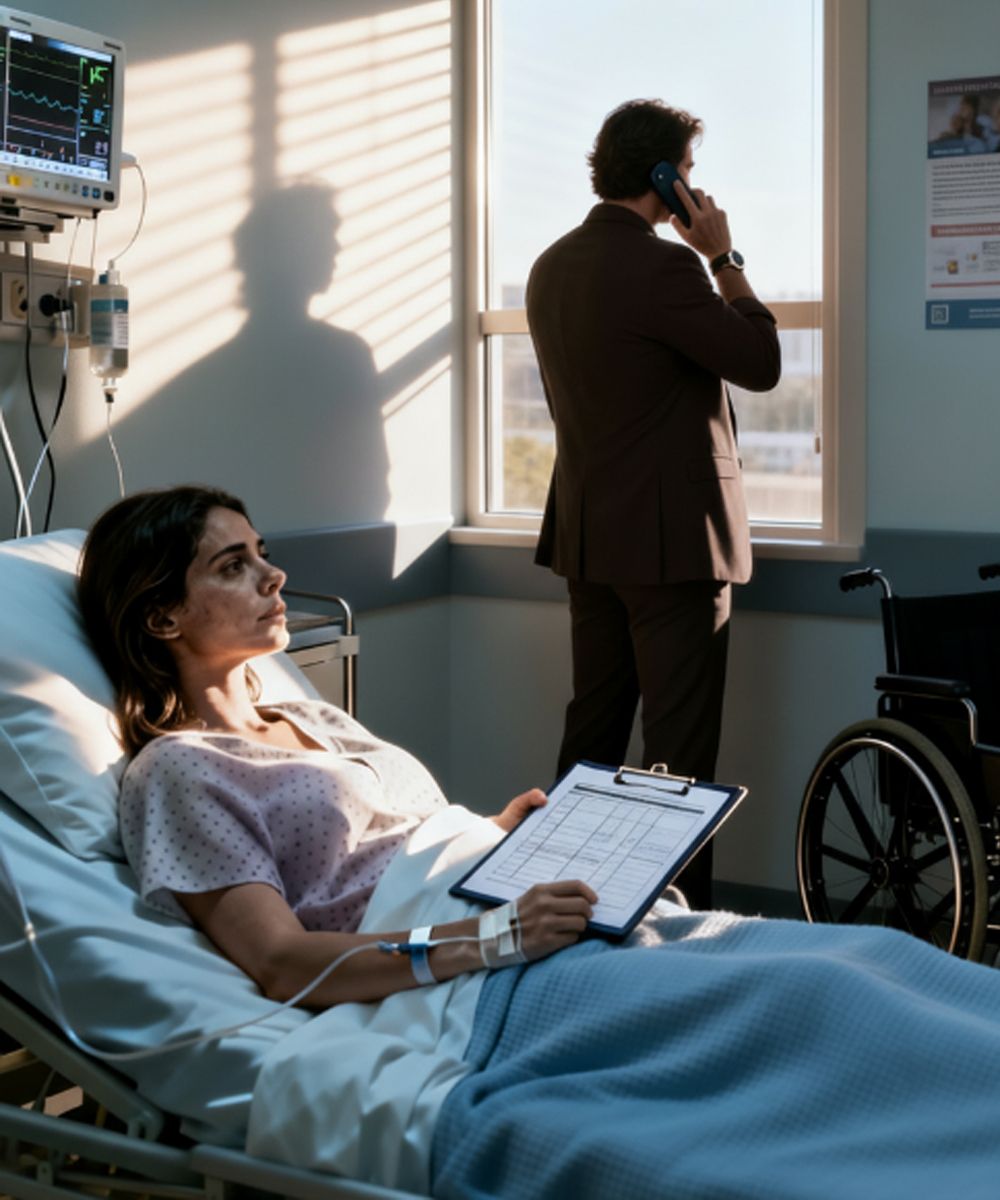 Tri dana kasnije, muž se vratio. Ne zbog nje, već zbog sebe. Ušao je u sobu sigurno, kao da očekuje da je sve isto. Ali nije bilo. Pored njenog kreveta stajali su doktor, žena u poslovnom odijelu i fascikle s dokumentima. Tu je bila i advokatica koju je sama pozvala, tiho i odlučno.