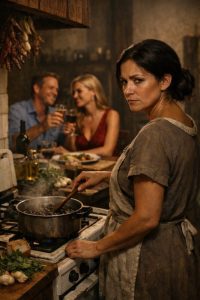Marie je stajala u kuhinji, s mirisom svježeg bilja u zraku, pripremajući ručak dok je njezin muž Paul stigao kući. Na njegovom dolasku slijedila je Camille, mlada žena u visokim petama, s očitim pogledom na Marieinog muža.