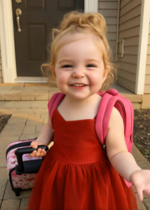Moja četverogodišnja kćerka stajala je tačno na pragu kuće, uspravno, kao mali stražar. Na leđima je nosila svoj roze ruksak, a pored nje je bio mali kofer na točkiće, onaj koji koristimo kad idemo na more.