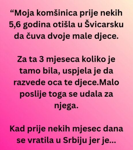U ovom članku Vam donosimo priču o komšinici koja je pre nekoliko godina otišla u Švicarsku da čuva dvoje male djece i doživjela neočekivane događaje. U nastavku saznajte šta se tačno desilo i kako je to iskustvo promijenilo njen život…