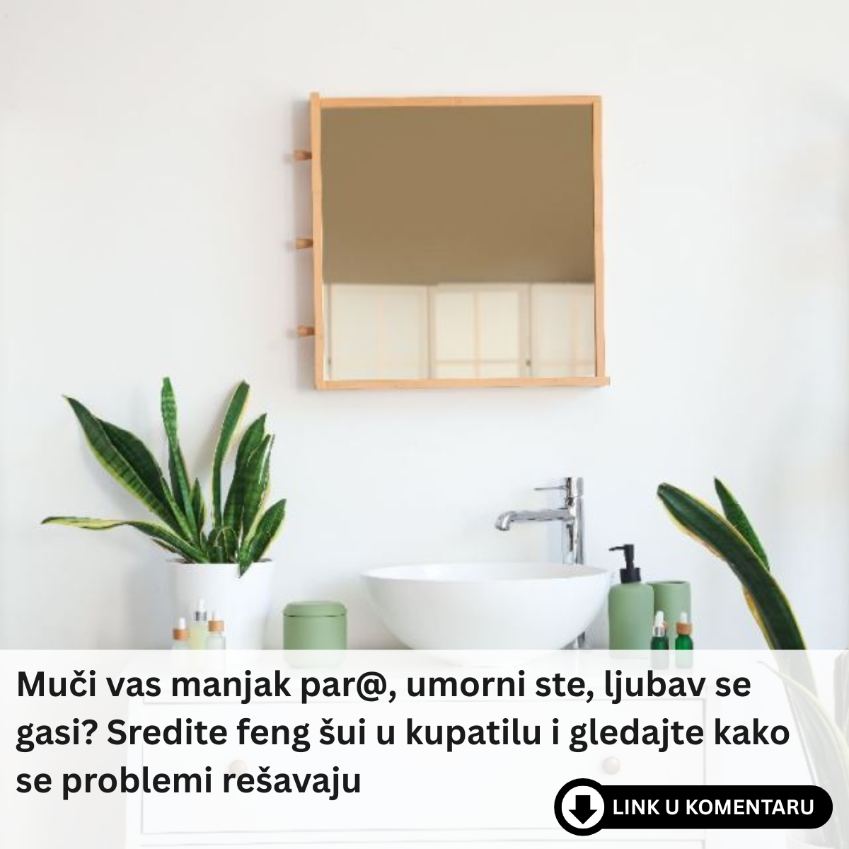 - Jedan od najčešćih feng šui izazova je kupatilo smešteno u zoni bogatstva, koja se nalazi u levom zadnjem kutu doma, gledano od ulaznih vrata. Prema feng šuiju, ovo može izazvati curenje energije obilja i prosperiteta. Rešenje za ovu situaciju je vrlo jednostavno — postavite živahnu biljku u prostoriju. Biljke mogu apsorbovati vodu i pretvoriti je u rast i vitalnost, čime se podstiče drveni element koji je povezan s ovom zonom. Prema “N1”, biljke poput bambusa ili orhideja mogu pomoći da se poboljša protok energije u domu, čineći prostor energičnijim i zdravijim.