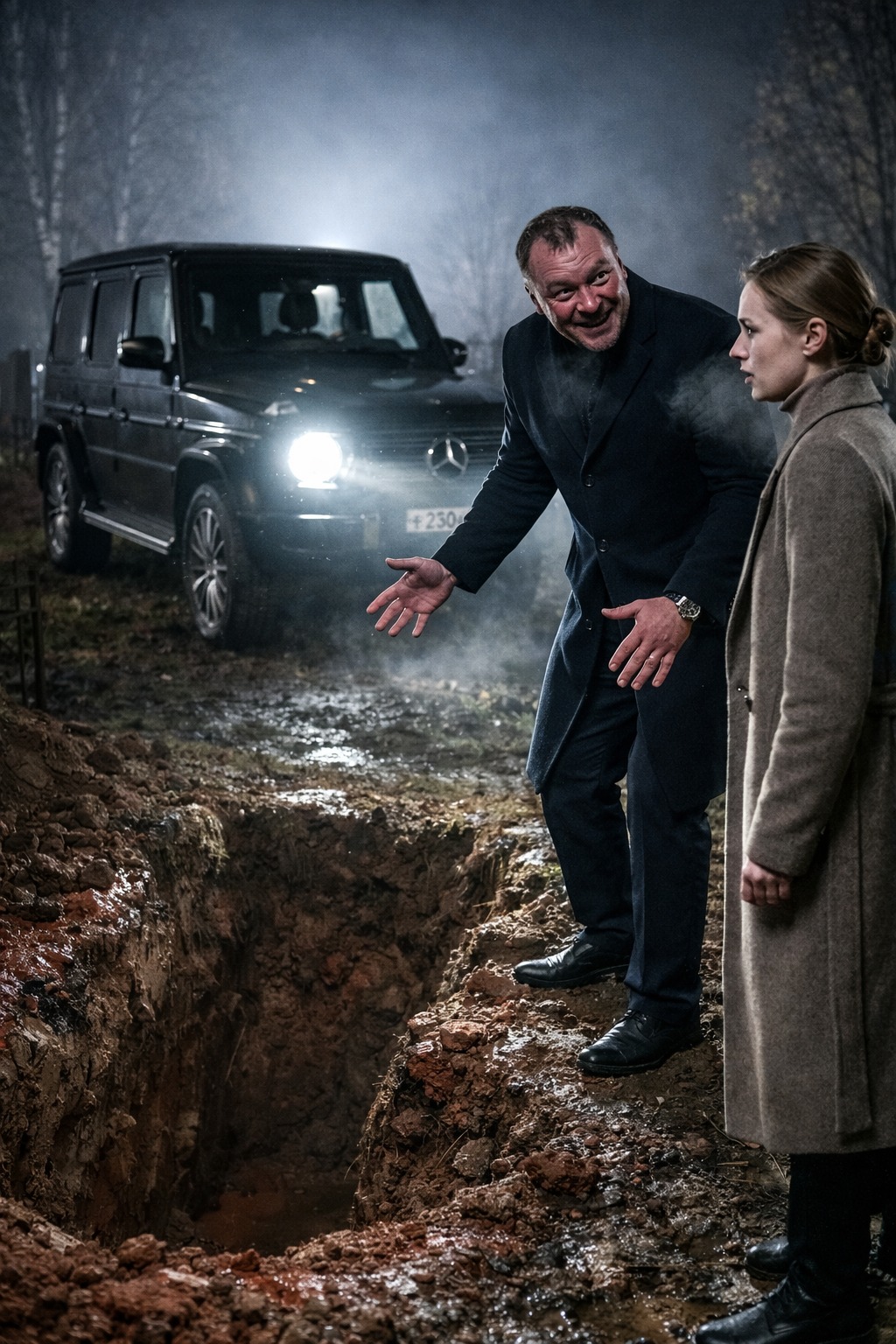 - Ana nije mogla da ignoriše nelagodu. Ipak, sela je u auto i krenula sa njim. Mrak je gutao put ispred njih, dok su farovi sijali po mračnom putu, dok je ona osjećala sve veći strah. I, kada su stali, naišli su na iskopanu rupu u zemlji, prepunu crnih, vlažnih zemljanih krhotina. U tom trenutku, njene ruke su počele da drhte, i dok je on mirno govorio, njeno srce je bilo prepuno tjeskobe.