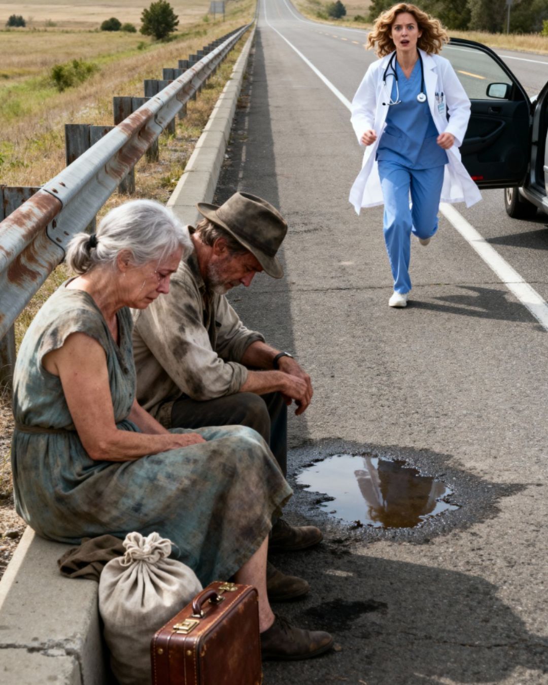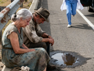 Bio je vruć julski dan. Vozila je sama, umorna nakon puta, dok su se ispred nje smjenjivala polja i napuštene štale. Tada ih je ugledala. Dvoje starijih ljudi sjedilo je pored puta, na starim koferima, pogrbljeni, izgubljenog pogleda. Izgledali su kao ljudi koje je život ostavio po strani. Nešto u tom prizoru natjeralo ju je da zakoči, iako nije znala zašto.