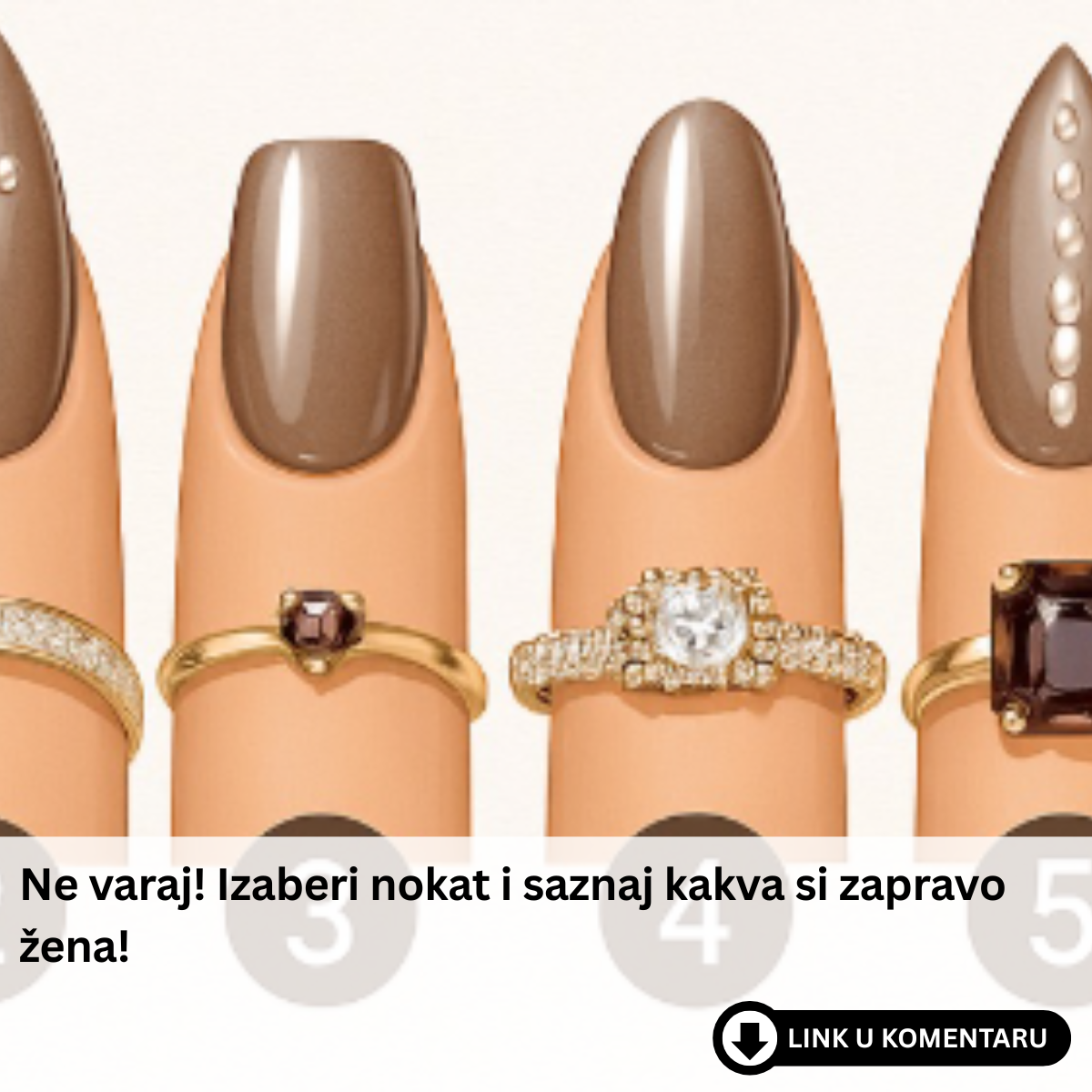 - Na kraju, važno je naglasiti da izbor noktiju nije strogo pravilo niti test karaktera, već mogućnost da izrazimo ono što trenutno osjećamo ili želimo da pokažemo. Ponekad će biti jednostavni i prirodni, drugi put razigrani i šareni, a možda i smjelo oštri. Svaki stil nosi svoju priču, a svaka priča govori o osobi koja stoji iza nje.