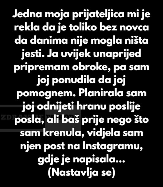 U ovom članku Vam donosimo iskrenu ispovijest osobe koja je odlučila da ne podijeli hranu sa prijateljicom nakon što je vidjela njen profil na društvenim mrežama. U nastavku saznajte šta ju je navelo na ovu odluku i kako je prijateljica reagovala…