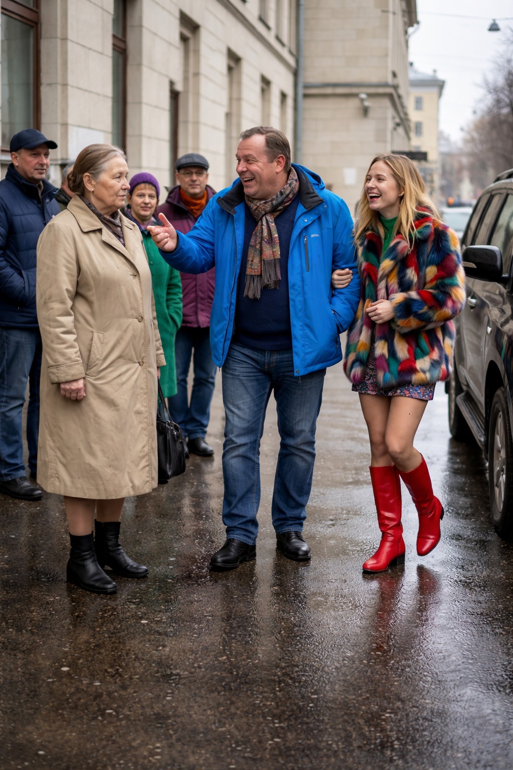 Dok je pokušavao da izbegne odgovornost, ljubavnica je panično pokušavala da spasi situaciju, skidajući sa sebe skupocenu bundu kao da je ona jedini dokaz koji može da je oslobodi. Međutim, i ona je bila deo ovog prekršenog sistema. Na kraju su i ona i on bili prisiljeni da odu na stanicu, suočeni sa pravdom.