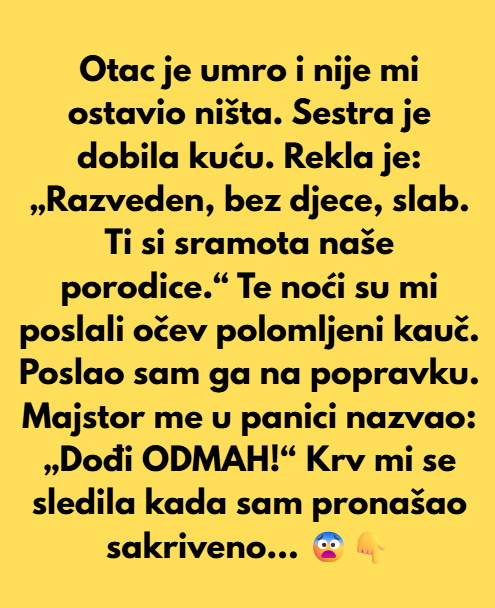 Nekoliko sedmica kasnije pozvana sam na čitanje testamenta. Nisu me zanimali novac ili imovina, ali duboko u sebi sam vjerovala da me otac nije potpuno izbrisao iz svog života. Mislila sam da će mi bar ostaviti nešto – neku poruku, predmet, znak da sam mu ipak značila. I onda je testament pročitan. Moje ime nije bilo spomenuto ni jednom. Nije mi ostavio ništa, kao da nisam postojala. Ni novac, ni imovina, ni uspomene. Sve je pripalo drugima. Tada sam osjećala poniženje, jer me je vlastiti otac izbrisao iz svog života čak i nakon smrti.