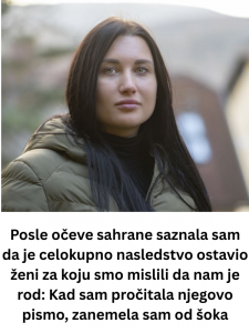 Kada je kovčeg spušten u zemlju, stajala sam tamo kao da sahranjujem deo sebe. Moj otac nije bio samo roditelj – bio je moje sidro, moja vera da u životu postoji nešto trajno. Vetar je oduvao poslednje lišće sa drveća, koje je tiho palo na svežu zemlju, kao da se oprašta na svoj način. Dok su se ostali razilazili, mama je tiho jecala, sestra ju je držala za rame, a pored mene stajala je nepoznata žena u crnom kaputu. Njeno prisustvo bilo je gotovo nametljivo – vitka, visoka, sa urednom frizurom i čudno mirnim licem. Setila sam se – jednom ju je otac predstavio: “Moja rođaka, Larisa.” Ali tada nisam obraćala pažnju na njen izgled.