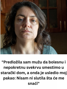 - Te reči su je slomile. Trideset godina je „mogla sve“. Ali sada više nije mogla. Rekla je da fizički ne može sama da brine o nepokretnoj osobi. Predložila je profesionalnu negu ili dom. Nije govorila o odricanju, već o realnosti. Ali njen muž nije želeo da sluša. Postavio je ultimatum: „Ili si sa mnom ili protiv mene.“