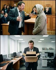 Sutkinja je donijela presudu, a Liza je dobila stan, dok je Matvej, nezadovoljan, tražio kompenzaciju za “neodvojiva poboljšanja” koja je napravio u stanu. Suma koja je bila određena bila je pravedna, iako visoka, ali Matvej to nije mogao prihvatiti. Njegov bijes nije imao granica, i u trenutku kada je počeo iznositi uvrede prema Lizi, pokazao je pravo lice – beskompromisnu pohlepu i ponižavanje. Bio je uvrijeđen i govorio je da će Liza morati vratiti čak i njegove poklone, uključujući donje rublje koje je poklonio na njihovu petu godišnjicu.