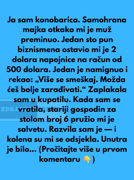 Rad u ugostiteljstvu, posebno kao konobarica, nije nimalo lak. To nije samo posluživanje hrane, to je rad sa zahtjevnim ljudima, cijeli dan na nogama bez odmora. Iako bi bilo lakše da odustane, ona ostaje i daje sve od sebe. Nije to samo profesionalizam, to je njezin način da pokaže djetetu kako se radom može postići dostojanstven život. Njezin osmijeh na poslu nije samo maska, to je snaga koja joj pomaže da izdrži i dan za danom prevaziđe sve izazove.