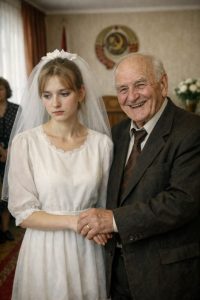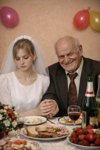 Mlada devojka, samo devetnaestogodišnjakinja, bila je potpuno potresena. Imala je snove o običnom životu i mogućnosti da studira, ali nije imala mnogo izbora. Roditelji su je ubedili da je to jedini način da spase porodicu. Iako je u početku odbijala, obećanje roditelja da će život postati bolji ako se uda za starca nije joj ostavilo mnogo prostora za izbore. Na kraju je pristala, a venčanje je obavljeno u tišini, sa njom koja je gotovo celu ceremoniju provela sa spuštenim očima, a muž koji ju je držao za ruku čvršće nego što je bilo potrebno.