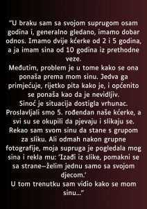 Kada sam to čuo, više nisam mogao da ćutim. Izgubio sam kontrolu i rekao joj: “Mi trebamo biti jedna porodica, a moj sin zaslužuje da ga voliš i poštuješ kao svoje vlastite djecu.” Taj trenutak za mene nije bio samo razgovor – bio je to poziv na promjenu, na jednakost i na shvatanje da svi članovi obitelji zaslužuju istu ljubav i pažnju.