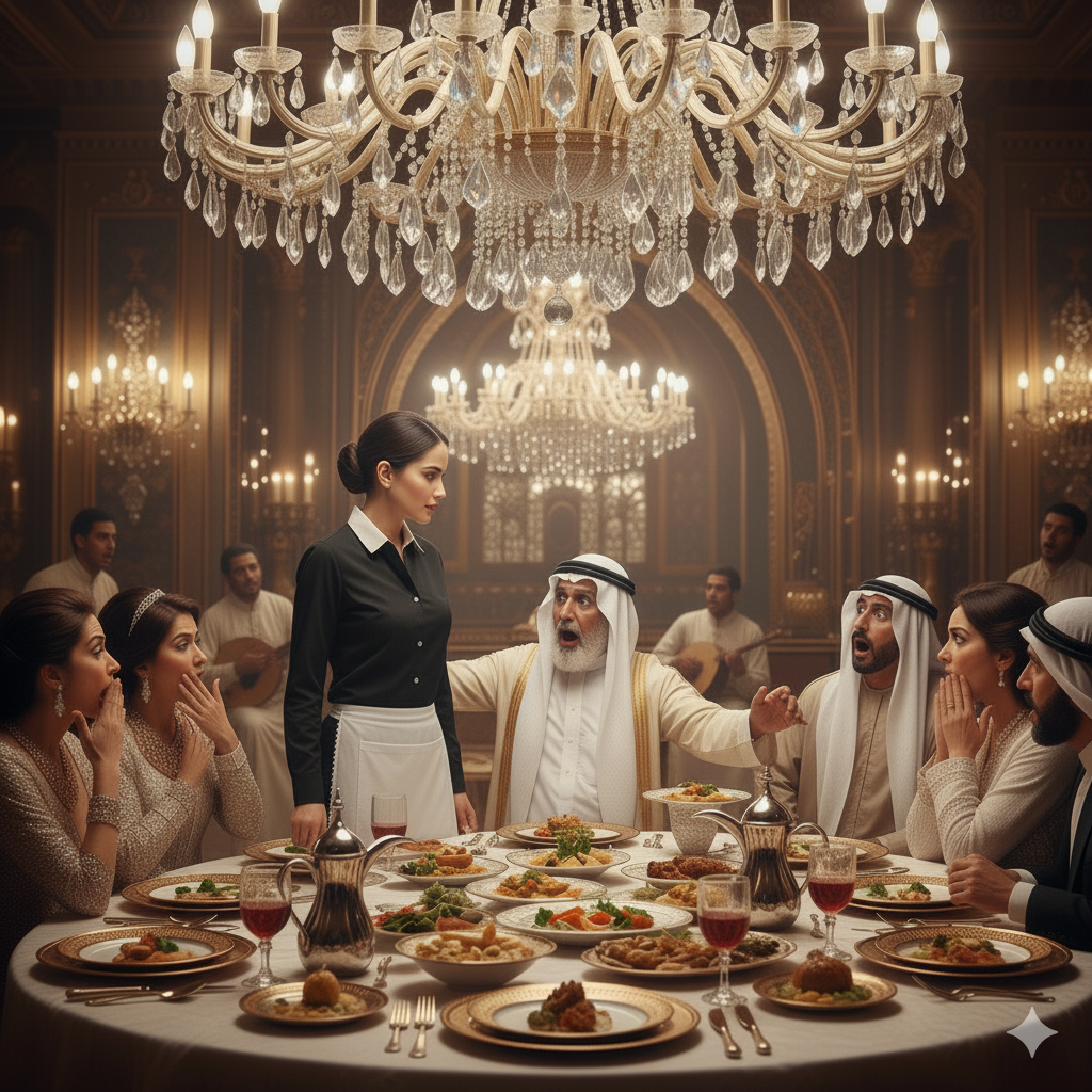 U luksuznom restoranu, pod raskošnim lusterima, gde se okupljala elita Bliskog Istoka, miris šafrana i začina širio se u vazduhu. Na glavnom stolu sedeo je naftni magnat, jedan od najbogatijih ljudi na svetu, sa imanjem od 43 milijarde dolara. Oko njega su se okupljali uticajni gosti, uživajući u vrhunskim jelima i elegantnoj atmosferi.