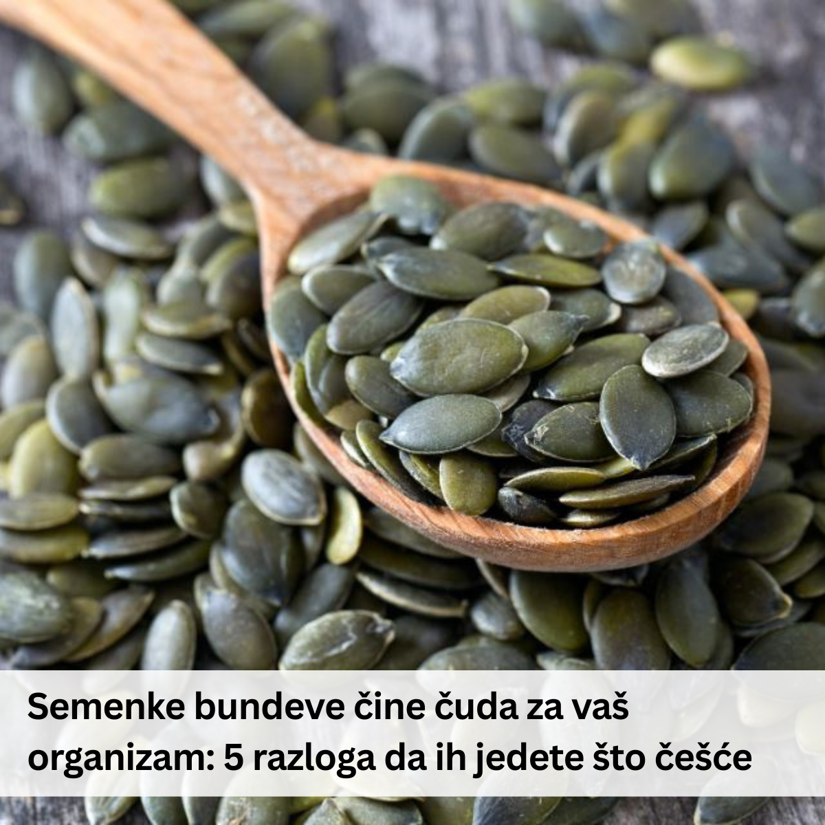 - U konačnici, sjemenke bundeve nisu samo hrskava grickalica, već i mali paket moćnih hranljivih tvari koje doprinose zdravlju cijelog organizma. Njihova redovna konzumacija može podržati srce, regulisati šećer u krvi, ojačati imunitet i pomoći u prevenciji određenih oblika raka. Osim toga, donose i osjećaj zadovoljstva jer predstavljaju prirodan i jednostavan izbor. Kako prenosi Jutarnji list, stručnjaci iz Zavoda za javno zdravstvo Hrvatske sve češće preporučuju da sjemenke bundeve postanu sastavni dio jelovnika mladih ljudi, upravo zato što predstavljaju balans između užitka i zdravlja.
