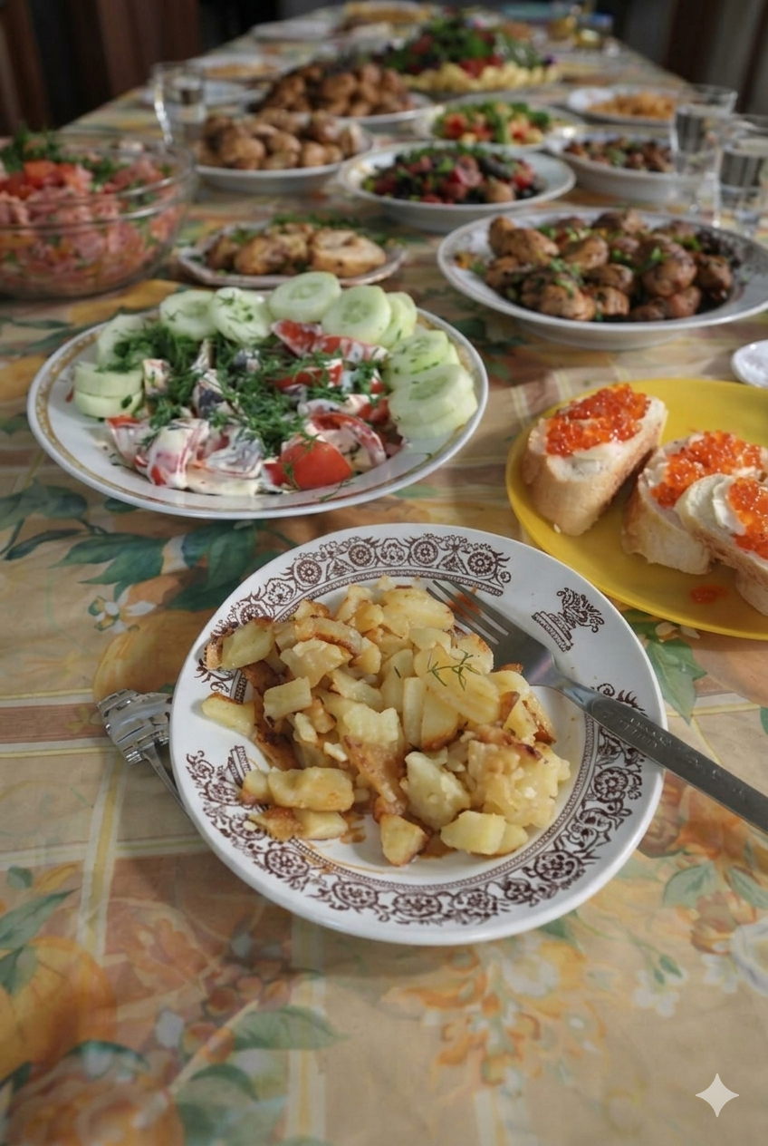 Pripremila je pileću supu, pohovano meso i krompir salatu, verujući da će njen trud biti primljen sa zahvalnošću. Međutim, muževljev dolazak kući nije prošao kako je očekivala. Bez ikakvog uzbuđenja, nakon što je samo jedanput probao, rekao je: “Opet isto?” Ove reči su je pogodile, kao oštar udarac u srce. U tom trenutku, osećala je da je sve što je radila bilo uzalud, da nije postigla ništa, i da je njen trud bio potpuno neprepoznat.