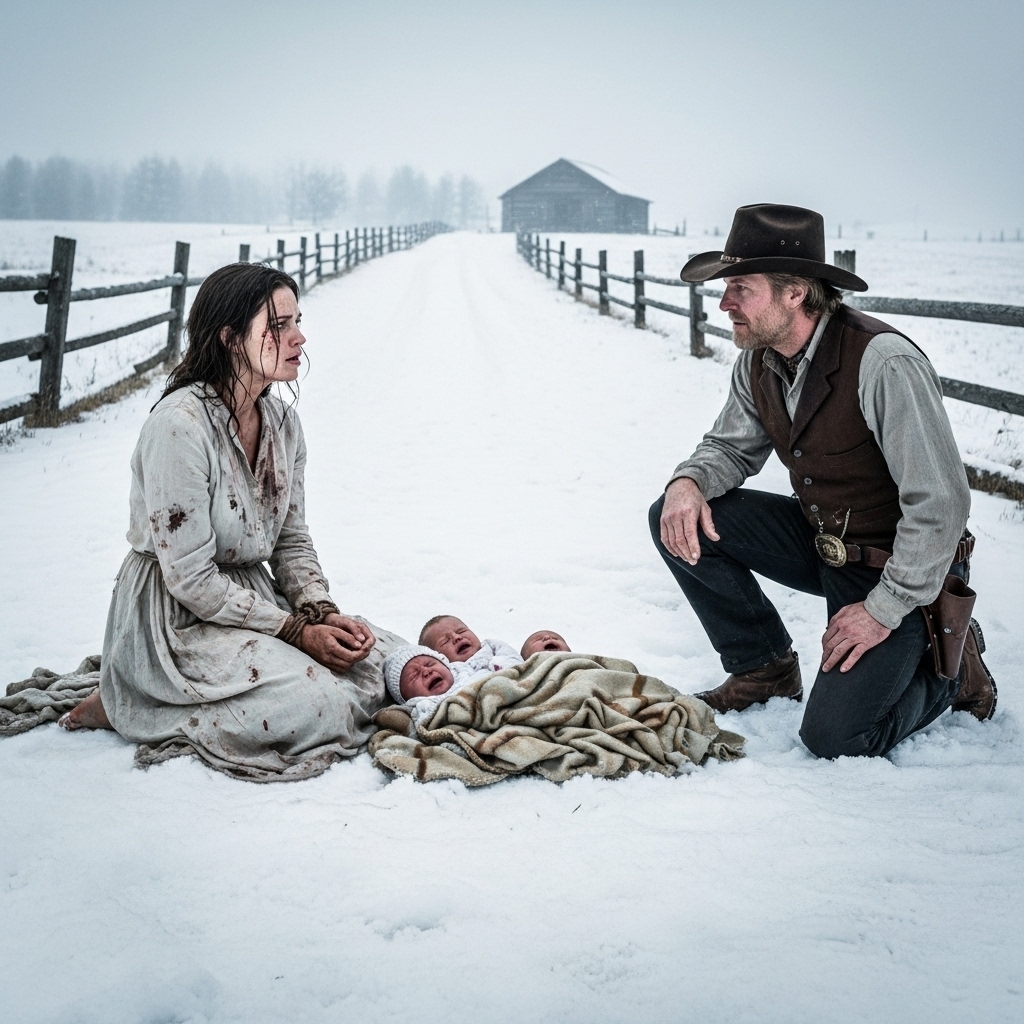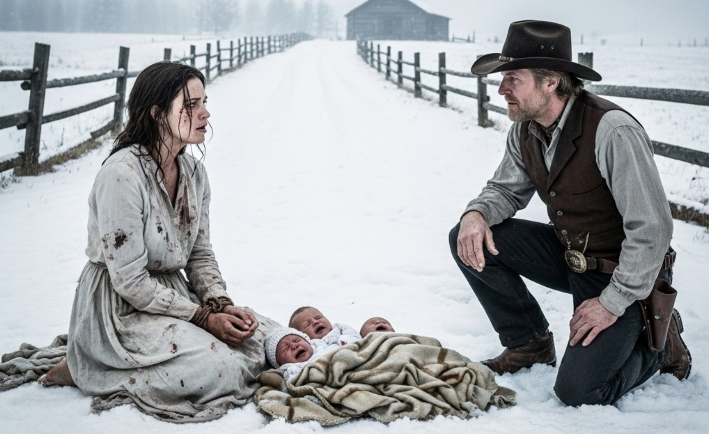 Zimska noć nad planinama bila je surova i neumoljiva, vetar je besneo i raznosio sneg kao da pokušava da izbriše svaki trag života. U toj mećavi, Boaz Kitridž, tihi i snažni rančer iz Kentakija, vraćao se kući preko zaleđenih staza. Navikao je na ćutanje i osamu, ali ono što je te noći ugledao promenilo mu je život zauvek. Na snežnoj klisuri ležala je žena, bleda i jedva živa, dok se pored nje čuo slabašan plač. Kada se Boaz sagnuo, video je tri sitna bića umotana u tanko ćebe – tri novorođene devojčice. Bez trunke razmišljanja, skinuo je svoj težak kaput i pažljivo ih obavio, štiteći ih od vetra. Zatim je poveo konja kroz snežnu pustoš, nadajući se da će ih stići dovesti do topline doma. Tri sata je jahao kroz oluju, boreći se sa vetrom i snegom, dok su mu misli bile samo na tome da sačuva te krhke živote.