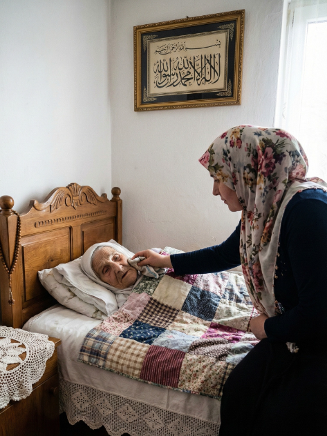 Ali vrata su se otvorila tiho. Alma je ušla s lavorom tople vode, čistim peškirom i sapunom. Bez riječi, bez pogleda punog prijekora. Njene ruke su bile blage, pažljive, pune saosjećanja. Oprala je svekrvu, presvukla je, nahranila kašiku po kašiku. Nazvala ju je “majka”. U tom trenutku, Hajra je zaplakala ne od bola, već od istine koju više nije mogla ignorisati.