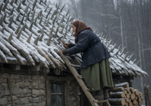 Joanne je svakodnevno birala drvo s pažnjom, birajući samo suvo i čvrsto drvo. Ručno je oštrila kolce i postavljala ih pod preciznim uglovima. S vremenom je njen krov izgledao sve strašnije, ali ona nije žurila. Komšije su je često pitale šta to radi, a ona je jednostavno odgovarala: “To je zaštita.” Ponekad su je pitali od čega se štiti, ali je odgovorila samo: “Od onoga što dolazi.” Komšije su je tada ostavljale na miru, ne razumevajući njene razloge, ali poštujući njene reči.