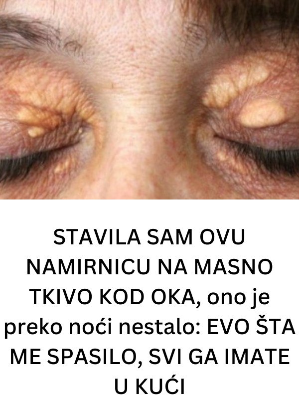 - Na društvenim mrežama često možemo naići na objave koje tvrde da žućkaste naslage ispod očiju, poznate kao ksantelazme, mogu nestati uz pomoć namirnica kao što su bijeli luk, jabukovo sirće ili ricinusovo ulje. Iako ovi savjeti zvuče kao brz način za poboljšanje izgleda, ksantelazme nisu samo kozmetički problem.