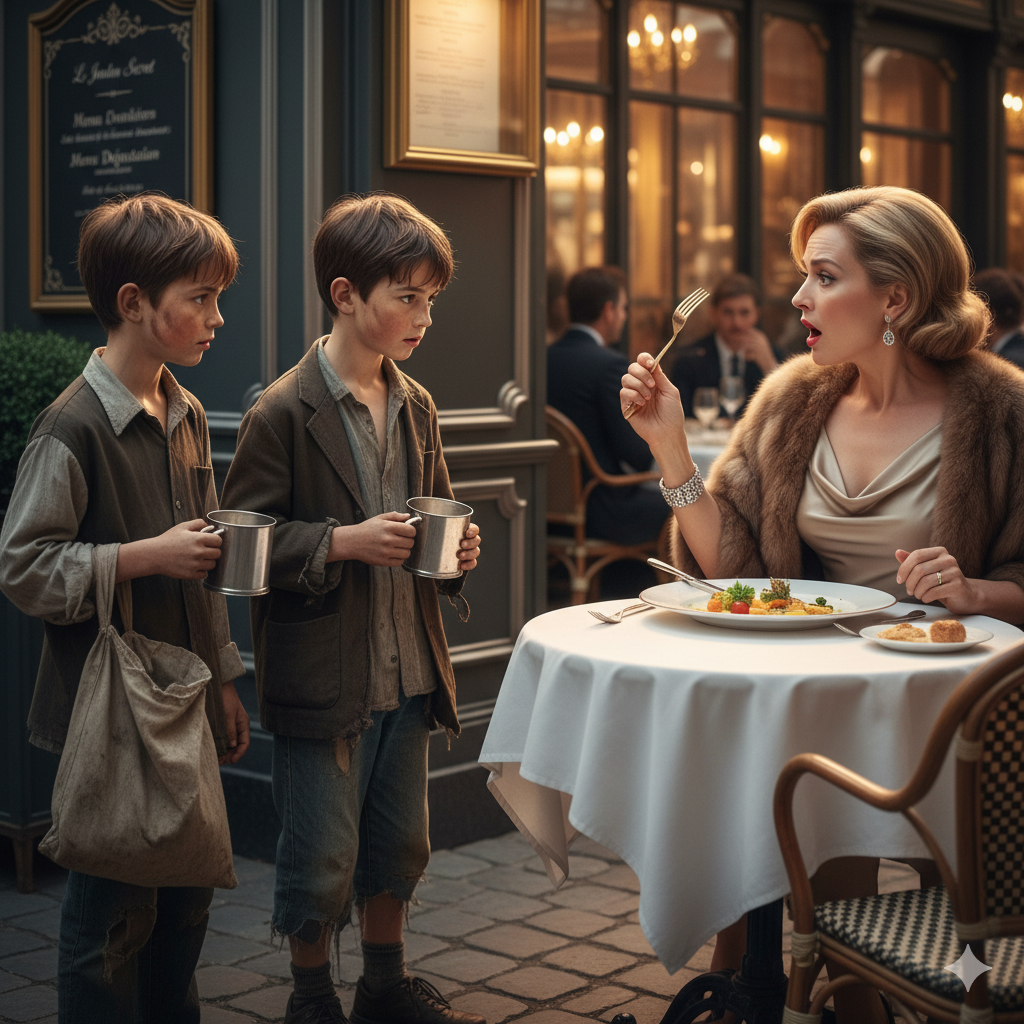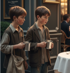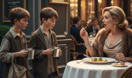 Dva dječaka, bosa i u pohabanim stvarima, sa stidom su stala kraj vrata. Njihov ulazak privukao je pažnju prisutnih, ali malo ko je pokazao istinsko interesovanje. U svetu uglađenih ljudi, njihova tuga nije pripadala sceni. Stariji dječak, sa pogledom punim nade, prišao je stolu za kojim je sedela Eleanor i tiho progovorio.