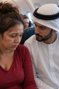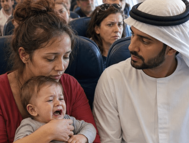 I u tom trenutku, dok je sve delovalo beznadežno, desilo se nešto neverovatno. Pored majke i njenog deteta sedeo je mladi šeik, obučen u tradicionalnu belu odeću, koji je mirno posmatrao situaciju. Umesto da se ljuti i dalje nervozno reaguje, odlučio je da preduzme akciju. Polako je ustao, prišao majci i njenom sinu, i bez reči, seo pored njih. Njegov gest nije bio nagli, on je nežno počeo da ljulja bebu, dok je tiho pevao melodiju. Iako je pesma bila poznata mnogima, retko je ko se setio njenih umirujućih tonova. Majka je gledala unevereno. Plač je polako jenjavao, a disanje bebe je postajalo sve mirnije. Svi putnici su zaćutali. Osetila se neverovatna tišina, dok su svi u avionu shvatili da je ovo bio trenutak smirenja.